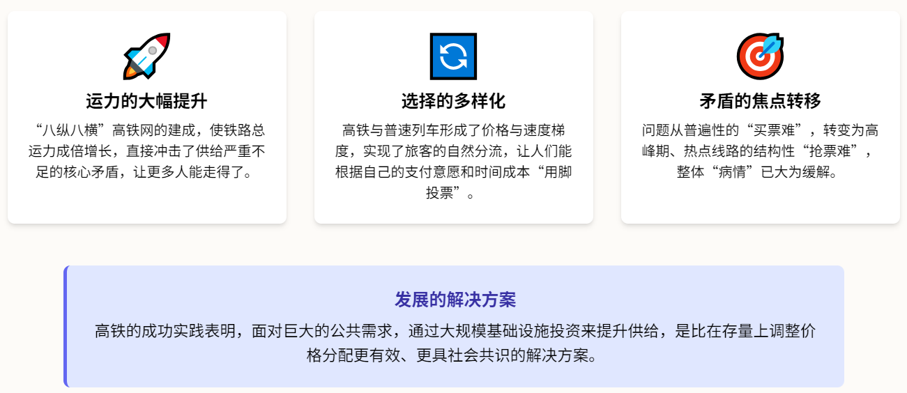 原文的分析基于运力严重受限的时代背景。近二十年,中国高铁的飞速发展成为了春运问题中最大的“变量”,它并非通过调整价格,而是通过改变供给,极大地重塑了局面。